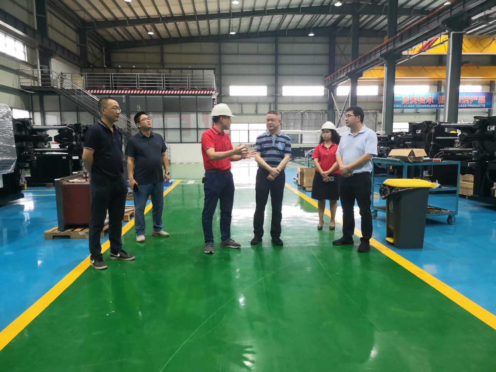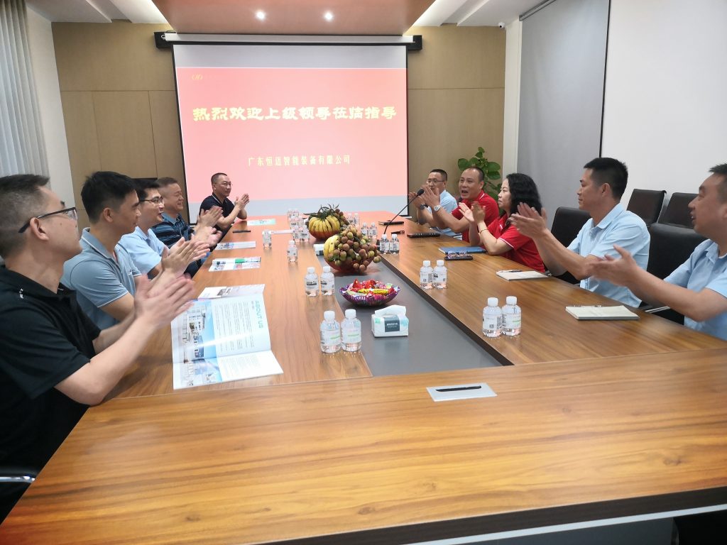 6月6日下午,鹤山市人大常委会副主席、总工会党组书记、主席储涂应先生,雅瑶镇党委书记冯伟航先生、雅瑶镇党委副书记李志坚先生等市领导莅临广东省恒迈智能装备有限公司指导工作,在总经理潘志泉先生,副总经理周玉琳女士的陪同下,领导们进行了实地考察,同时总经理潘志明向市委领导介绍了公司主要业务板块,工艺流程以及近期项目情况,领导们就有关企业经营情况进行了专项指导。