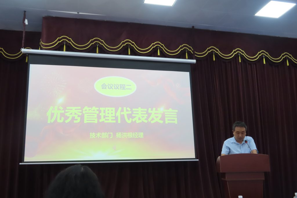 同时由优秀管理代表研发部经理彭庆伦先生和技术部经理杨洪根先生分别进行部门的上半年工作总结以及下半年工作安排。