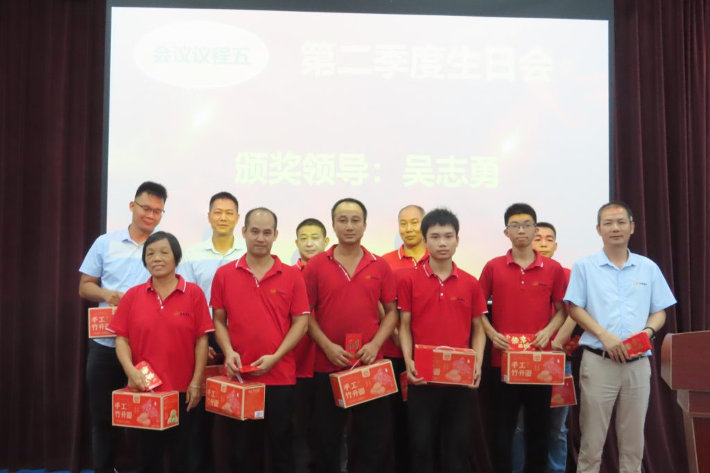 本次会议还进行了对季度优秀干部、优秀员工进行表彰,以肯定他们在工作中的出色表现;也对一、二季度的寿星员工们送上珍贵的礼物,感恩他们一路上的辛勤付出。